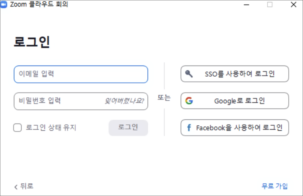 ② 프로그램을 실행하고 로그인 버튼을 선택해주세요. 계정이 없다면 무료로 가입을 진행해주세요.