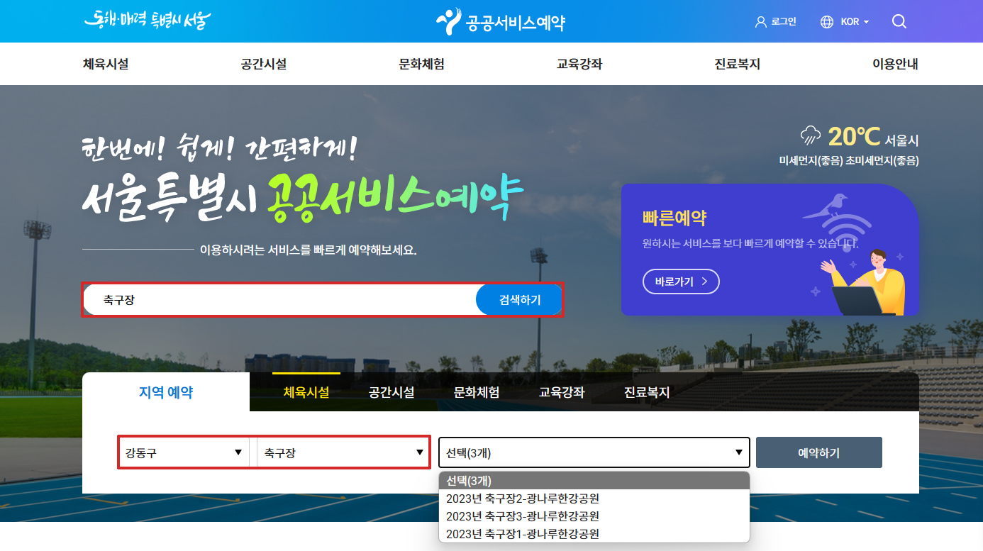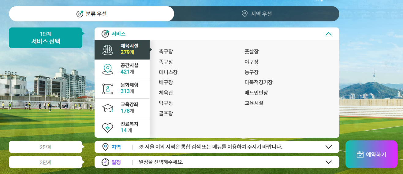 서울시 공공서비스 예약홈페이지