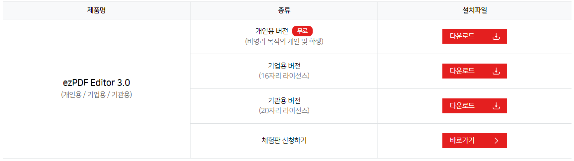아래의 기능을 사용하기 위해서는 ezPDF Editor 3.0 프로그램을 필수로 다운로드 받으셔야 사용이 가능합니다.